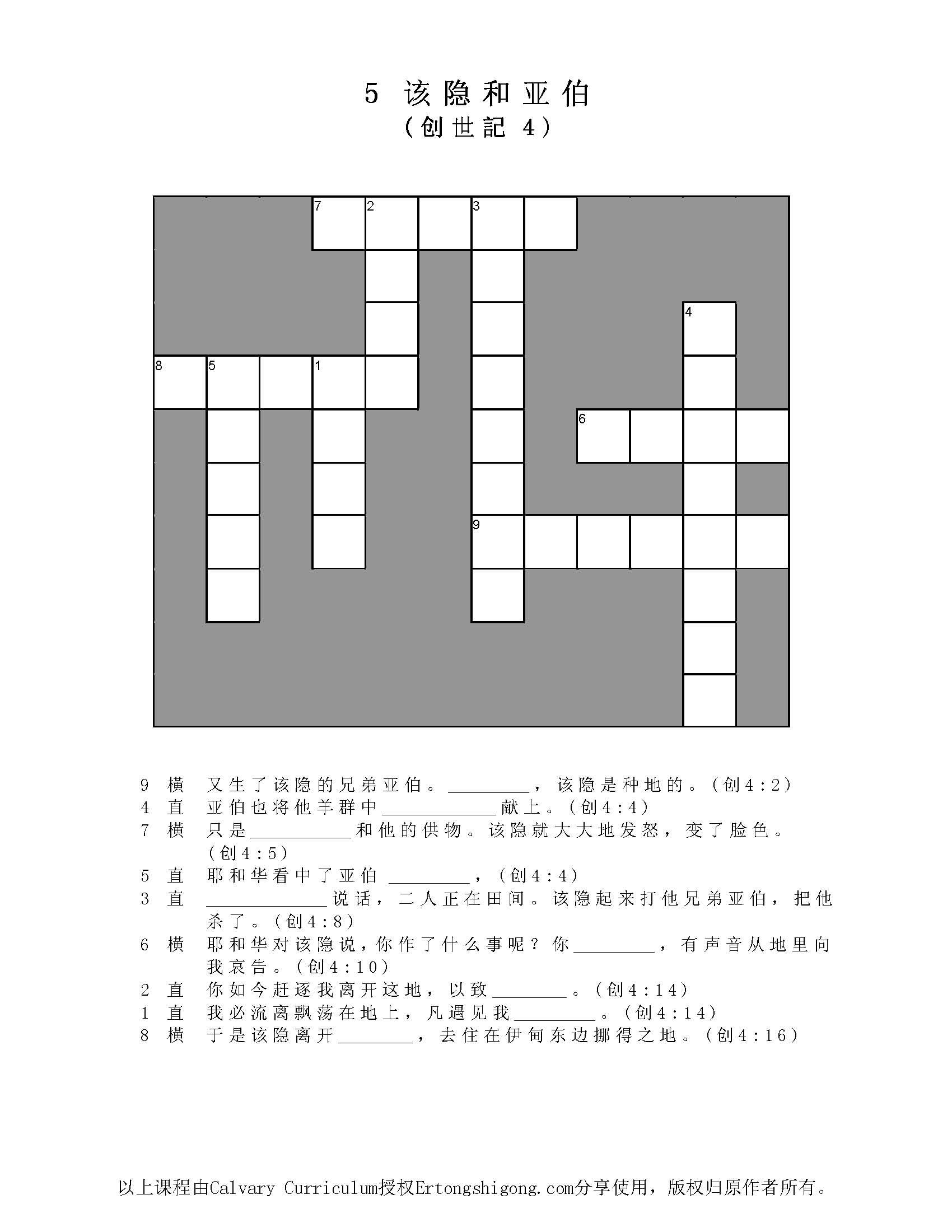 【填字/字谜】该隐和亚伯 相关经文:创世记4