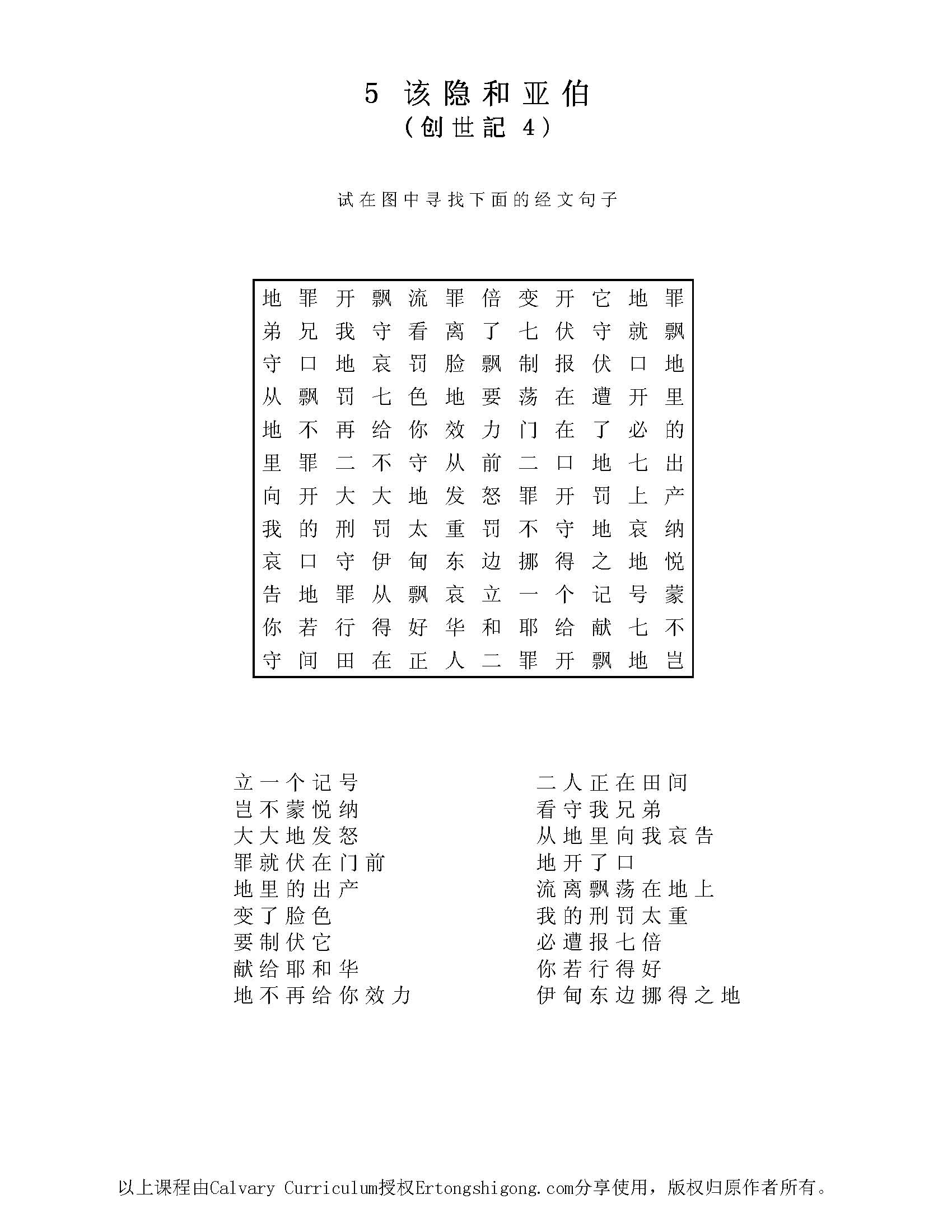 该内容版权归Clavary Curriculum所有,儿童事工网站获授权分享。