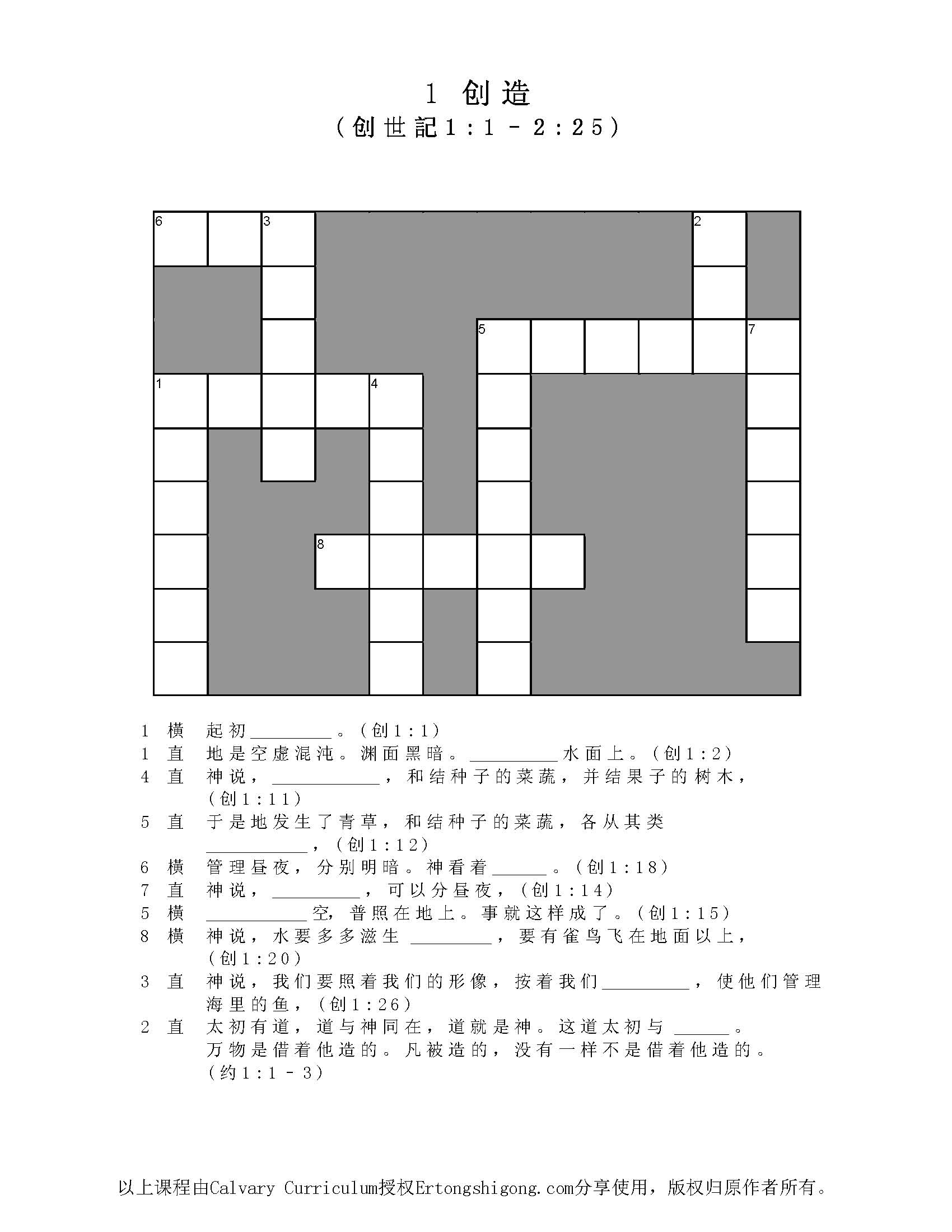 该内容版权归Clavary Curriculum所有,儿童事工网站获授权分享。
